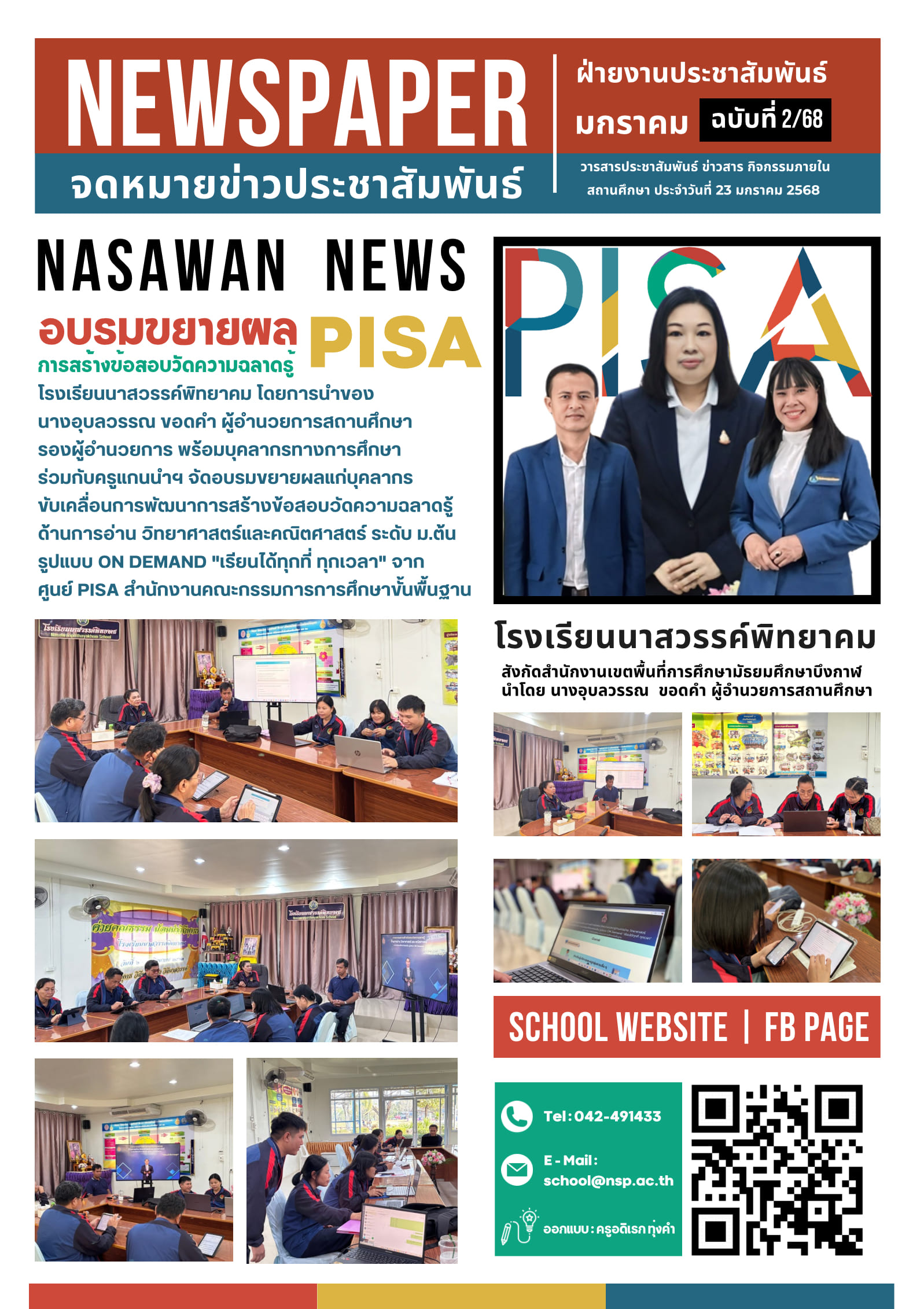 วันที่ 23 มกราคม 2568 : โรงเรียนนสวรรค์พิทยาคม นำโดยผู้อำนวยการอุบลวรรณ ขอดคำ พร้อมด้วยคณะผู้บริหาร ครูและบุคลากรทางการศึกษา ไดยดำเนินการการอบรมเพื่อขยายผลการดำเนินงานการสร้างข้อสอบวัดความรู้ PISA เพื่อให้เป็นไปตามนโยบายของ สพฐ. และการยกระดับผลสัมฤทธิทางการเรียนให้สูงขึ้น