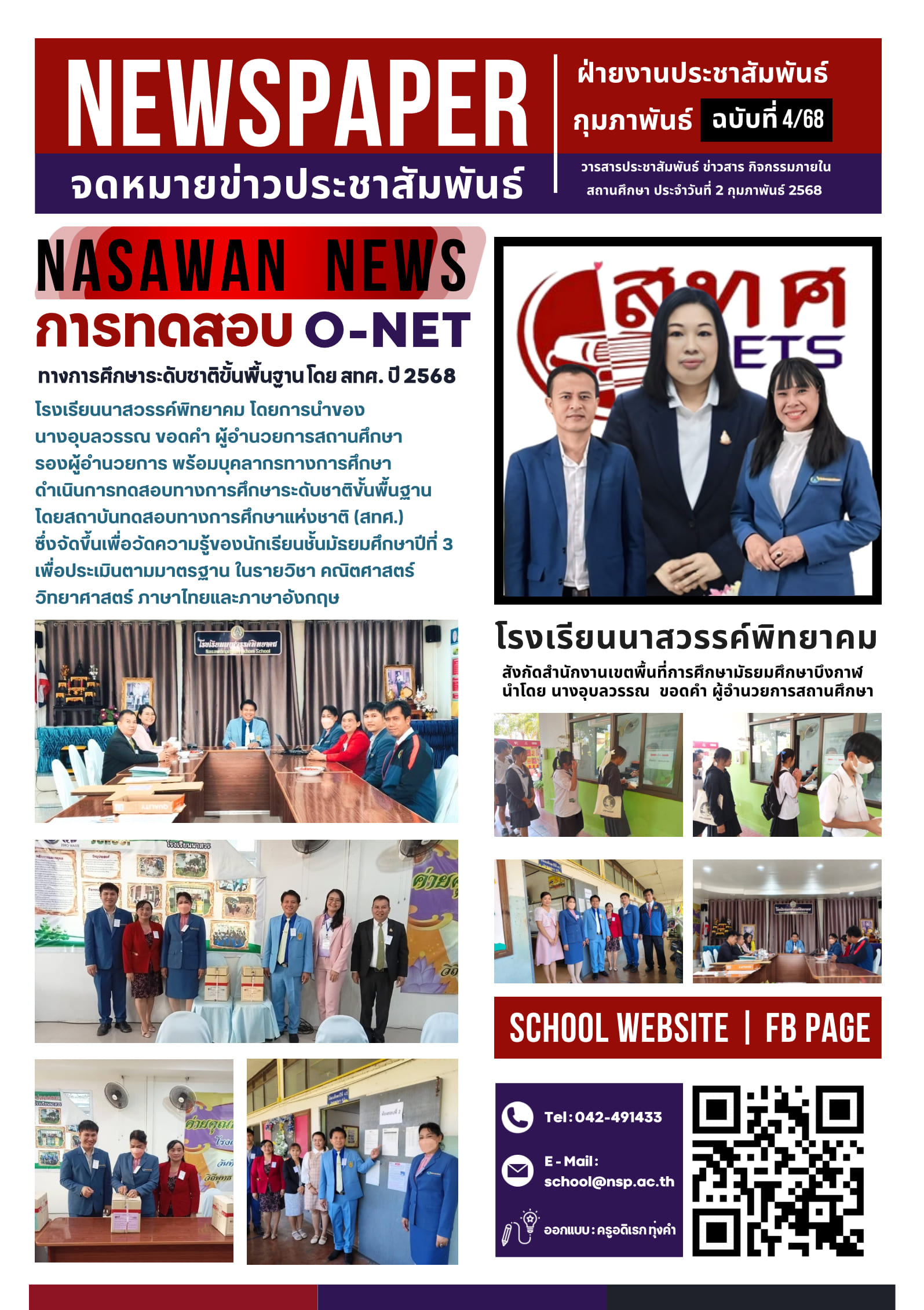 วันที่ 2 กุมภาพันธ์ 2568 : โรงเรียนนาสวรรค์พิทยาคม ได้รับการนิเทสติดตามสนามสอบ จากสำนักงานเขตพื้นที่การศึกษามัธยมศึกษาบึงกาฬ นำโดย ท่านรองฯ อดิศร ถวิลคำ รองผู้อำนวยการสำนักงานเขตพื้นที่การศึกษามัธยมศึกษาบึงกาฬ พร้อมคณะ สำหรับการทดสอบทางการศึกษาระดับชาติ (O-NET) ระดับชั้นมัธยมศึกษาปีที่ 3